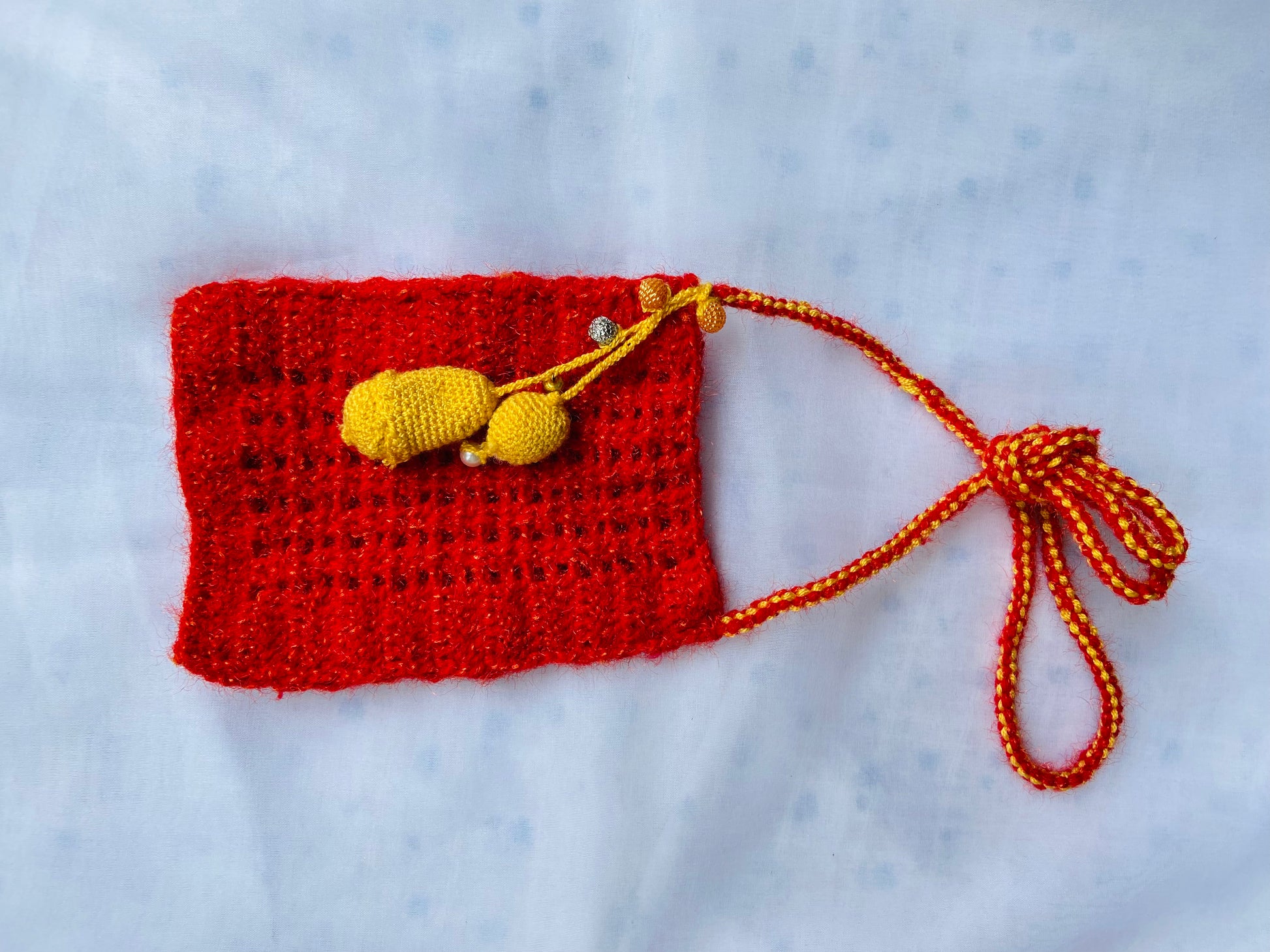 Red & Yellow Beaded Crochet Phone Sling Bag